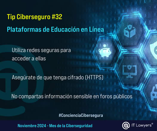 TIP CIBERSEGURO #32 EDUCACIÓN EN LÍNEA – #CONCIENCIACIBERSEGURA TIP CIBERSEGURO #32 EDUCACIÓN EN LÍNEA – #CONCIENCIACIBERSEGURA noviembre 28, 2024 Editor Fecha de publicación 28/11/2024 Aprende a cuidarte en todo momento