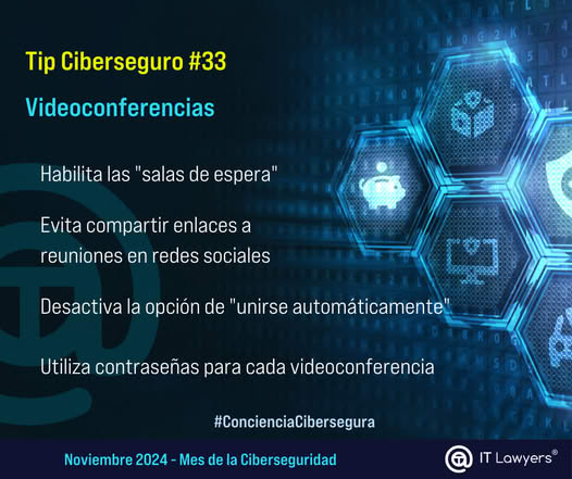 TIP CIBERSEGURO #33 VIDEOCONFERENCIAS – #CONCIENCIACIBERSEGURA TIP CIBERSEGURO #33 VIDEOCONFERENCIAS – #CONCIENCIACIBERSEGURA noviembre 29, 2024 Editor Fecha de publicación 29/11/2024 ¡Cuidado!. Reserva el derecho de admisión..